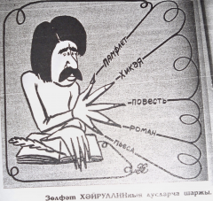 Артагы сын - язучының үзе уйган сыны. Визит карточкасы да Әлмәт чоры хатирәсе булып калды.