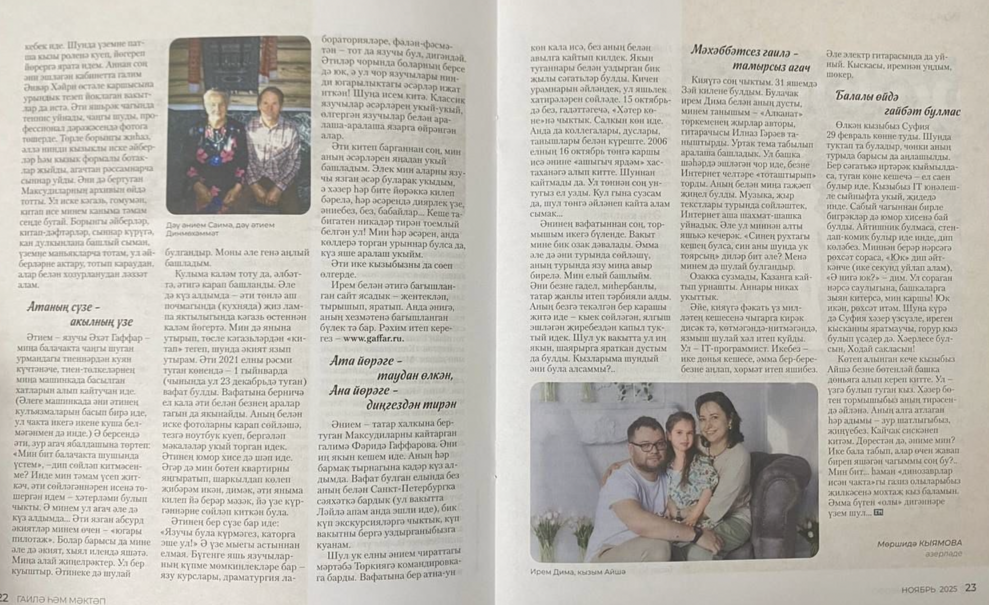капыл туктый идек. Шул ук вакытта ул иң якын, шаярырга яраткан дустым да булды. Кызларыма шундый әни була алсаммы?..