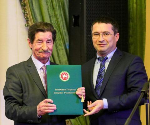 Фәрит Мөхәммәтшин белән. Татарстан Язучылар Берлегенең 85 еллыгы тантанасында