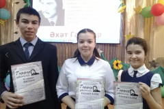 "Гаффар дәвамчылары" бәйгесенең финалы Халыкара туган телләр көне алдыннан бәйрәм өстенә бәйрәм булды. Әхәт Гаффарның үзе һәм башка якташ язучыларыбыз белән очрашу бәйгедә катнашкан укучыларыбыз күңеленә онытылмаслык бер хәтирә булып кереп калды. Гөлфинә һәм Азалиябез Рәхмәт хаты белән бүләкләнсә, Булатыбыз II дәрәҗә Дипломга лаек булды. Бу укучыларга тагын да иҗади уңышлар телибез.
