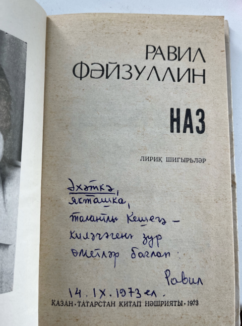 Равил Фәйзуллинның Әхәт Гаффарга бүләк иткән китапларыннан берсе.
