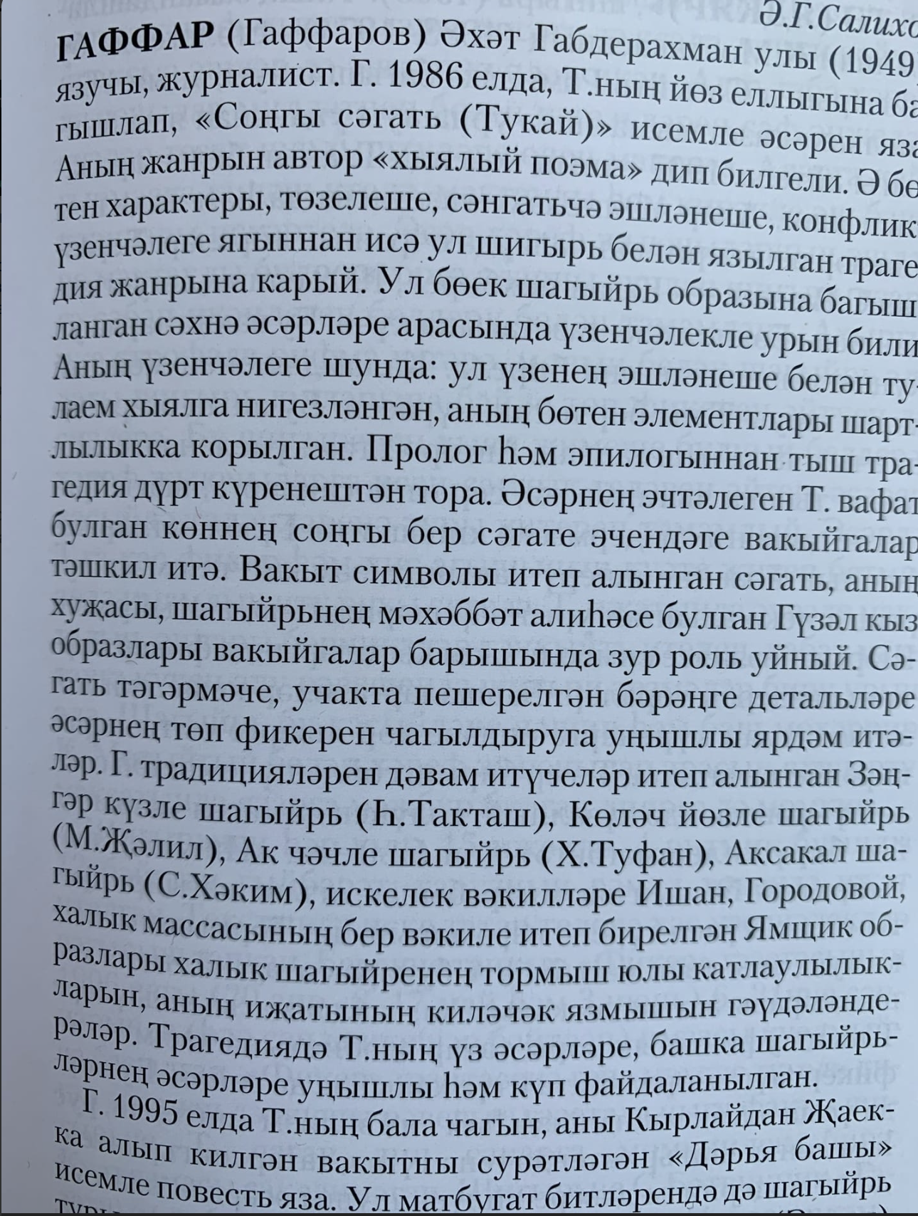 Әхәт Гаффар иҗаты әзерлекле, белемле укучылар өчен генә дисәк, инкарь итүче булмас. Тик ни гаҗәп: язучының стиле ничек кенә катлаулы булмасын, сүз Тукай турында барганда, аны җырлап, бар дөньяңны онытып укыйсың. Гаффар тудырган Тукай дөньясында, үзең дә сизмәстән, яши башлыйсың. Соңгы ноктасына җитеп, укып тәмамлагач та, Гаффарның Тукае йөрәктә кала, бик озакка әсәрләнеп йөрисең. Вакыт узып, кабат шул ук "Дәрья башы"н һәм башкаларны укыганда бөтенләй башка яңа хис-кичереш өермәсенә кереп китәсең. Һәр укыганда яңа әсәр укыгандай онытылып-йотылып укыйсың. Әхәт Гаффарның метафорага корылган серле, тирән фәлсәфи теле аша Тукай образы киңкырлы, үзенчәлекле, татарның бердәнбер үксез даһи улы булып сурәтләнә. Милләтемнең газиз улын кызгану белән беррәттән соклану-горурлану, аның бөеклеген зур шатлык аша кабул итү кебек каршылыклы хисләр дулкынын тудыра язучы.
